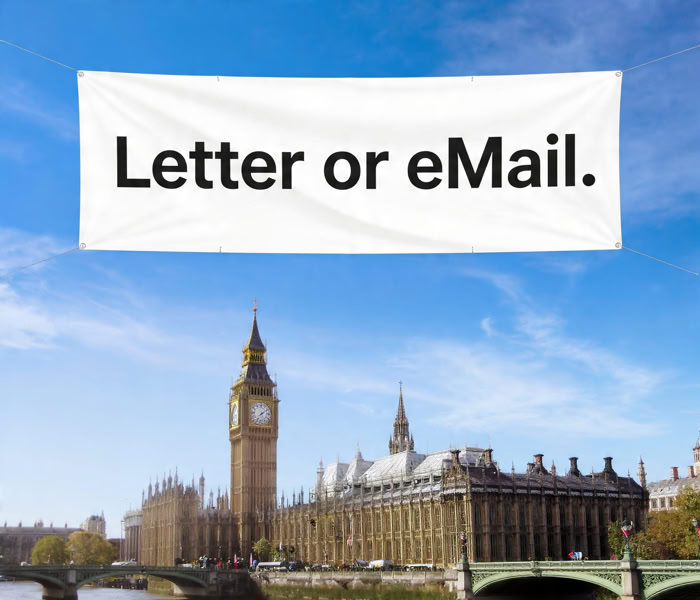 More often these days, emails are used to make contact with your MP. The same sample letters can be used in your eMail App.